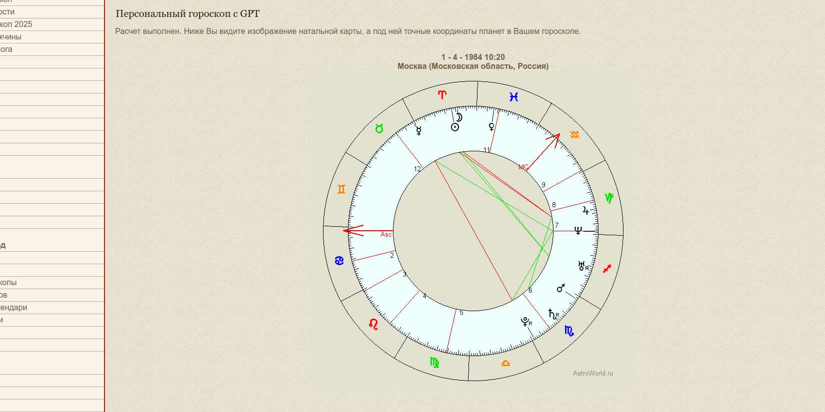 Далее мы рассмотрим популярные ИИ-сервисы для построения астрологических карт и составления гороскопов. Оценим, как нейросети составляют натальные карты с аспектами и полными расшифровками. И ответим на главный вопрос: стоит ли отказаться от услуг астрологов в пользу ИИ-приложений?