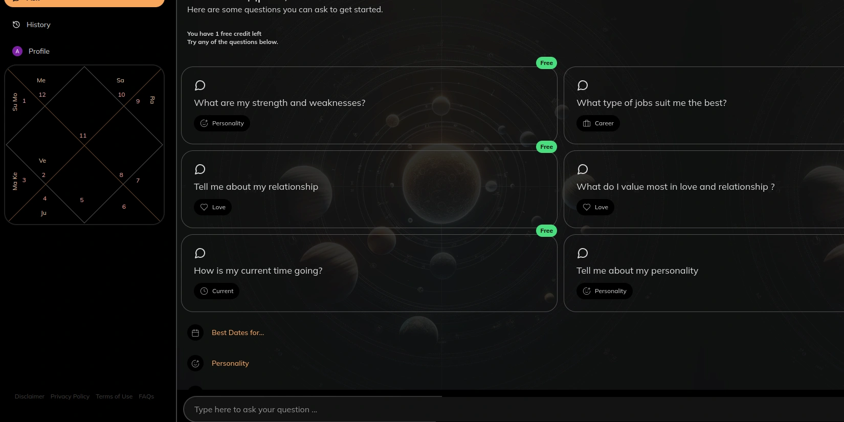 После указания даты и места рождения нейросеть построит натальную карту. Её можно кастомизировать, добавляя и убирая элементы. Доступен чат-бот, который ответит на любые вопросы по натальной карте. Примечательно, что можно задавать вопросы на русском языке, в отличие от ранее рассмотренных сервисов.